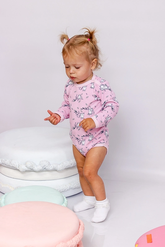 Комфортний ясельний боді з довгим рукавом з набивного начосу (натуральне полотно). Між ніжок застібається на 3 кнопки, для більш зручної зміни памперса. Прати при температурі не більше 30 ° C, дає усадку на 1-2 см. Для зручності на одному плечі в боді вставлена одна кнопка, за допомогою якої вам буде легше зняти його з дитини. Продукція бренду відрізняється європейськими стандартами якості і відшивається тільки з сертифікованої сировини.