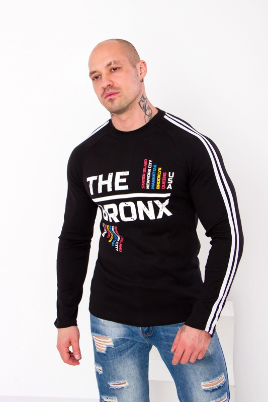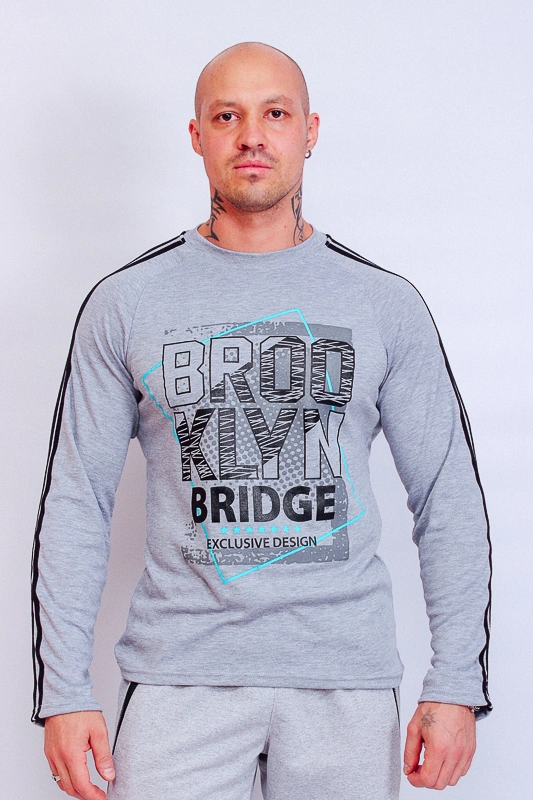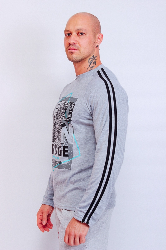 Спортивний чоловічий джемпер з легкого полотна - інтерлок. Рукав-реглан прекрасно лягає по плечу і не сковує рухи. На рукавах відшиті дві контрастні смужки - лампаси. Також на джемпері представлений невеликий накат в спортивному стилі. Після прання джемпер бажано висушувати на горизонтальній поверхні, щоб уникнути нерівного витягування.