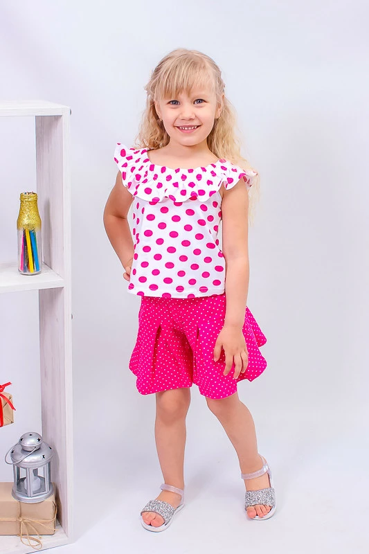 дівчинки (блуза + спідниця-шорти), пошитий з набивної фулікри.. Це