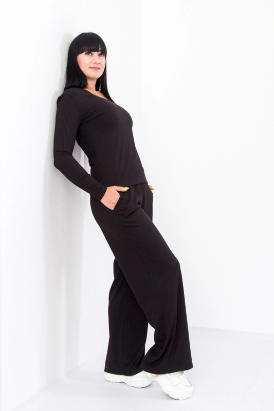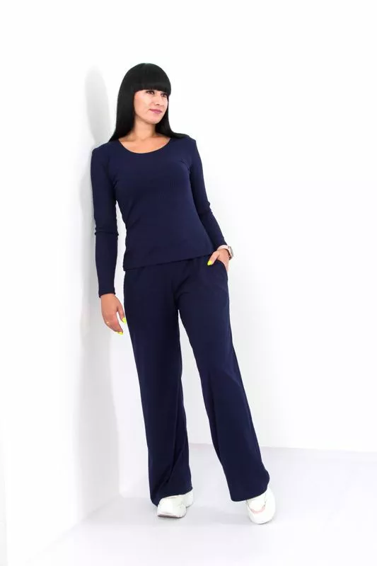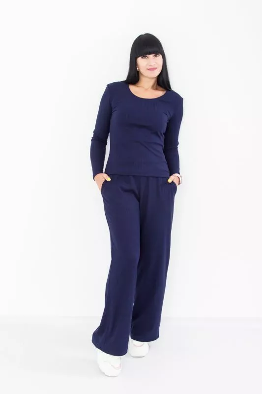 вирізом, з довгими рукавами і широких штанів із середньою посадкою,