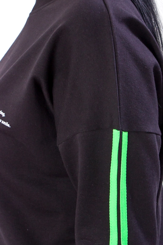 принтом - написом, низ, рукава і горловина кофти оброблені широкими