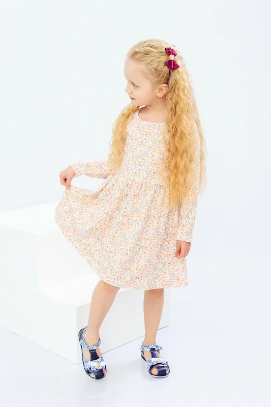 невеликими воланами на подолі. У цій сукні дівчинка може ходити на