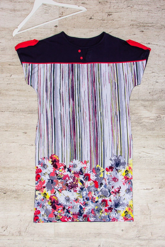 плаття виконано в комбінації набивного реактиву і однотонного