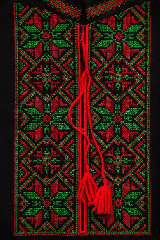 грудях і комірі-стійці. Доповнена китицями-зав'язками. Купуйте