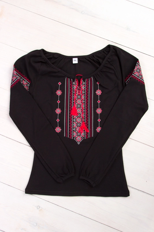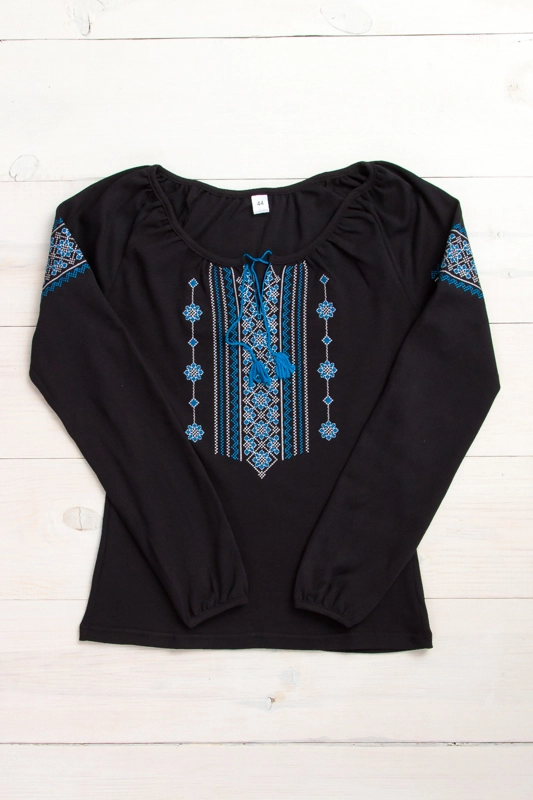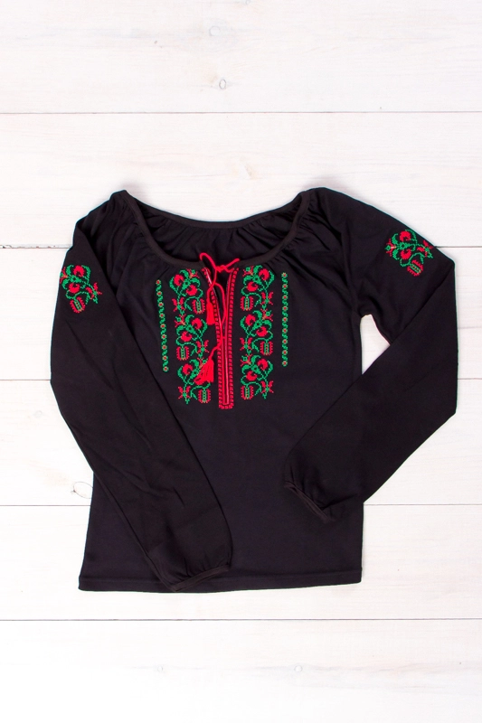 вишиванка з довгим рукавом з чорного інтерлока. Полотно має приємну